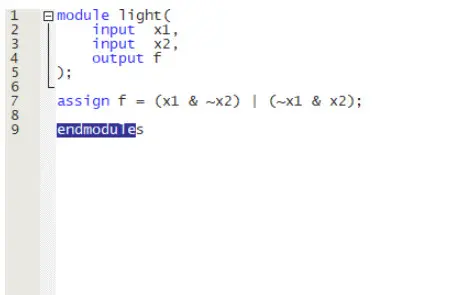 所需电路,如图13所示,使用Verilog代码来描述。注意,Verilog模块叫做 light,这个图5所示的名称是一致的。此代码的编辑可以使用任何可存储ASCprime码的文本编辑器,或者使用Quartus prime自带的编辑器。当然,文件的名称可以任意取;而和顶层Verilog模块的名称一致,是一个设计惯例。文件名称必须带.v扩展名,用以指示此文件为 Verilog文件。所有,我们使用light.v这个名称。