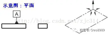 ①一个平面基准形体确定的模拟基准形体建立了一个基准平面,它限制了三个自由度(一个平移,两个旋转)。
