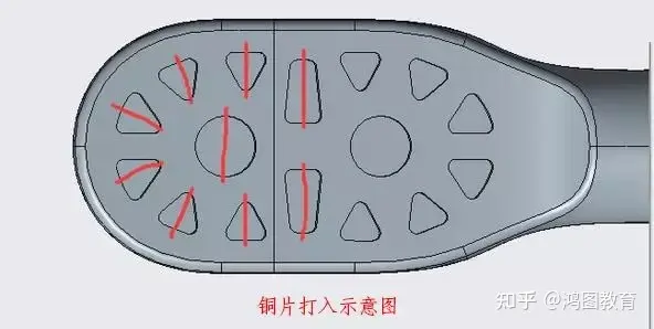 刷毛:刷毛部分结构上注意孔间距,由于植毛时要打入铜片,所以要留一定的安全距离,同时一般铜片是根据形状对称打入的, 所以形状最好是对称的,这样植毛受力均匀, 不易脱落。通常图纸画好后需要给植毛厂评审。