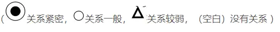 ①设计要求和零部件间关系可以用数字表示(3分制,4分制,5分制,9分制或10分制,依次表示关系的密切程度),也可以用符号表示