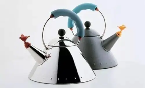 如今的开水壶在水烧开之后会“鸣叫”这似乎是司空见惯的事情嘛,但是,这款设计最早使于1985年,由设计大师迈克尔格雷夫斯设计。这件作品产生于波普运动时期,其经典之处在于壶口的位置安装了一个小哨子,当水烧开时,小哨子就自然发出鸣叫,引起使用者的注意,从此不再担心烧水的顾虑了。创新不止在形态的创新,功能与形式的结合也从另一方面诠释了工业设计。