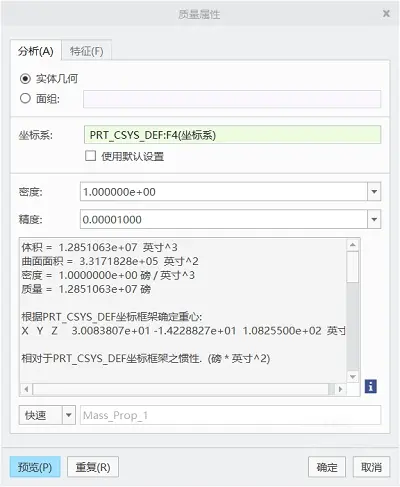 实体模型的创建是一个不断增加特征的过程,随着特征的不断增加,这些属性也将更新。例如,如果向模型添加孔,则模型的质量会减少。