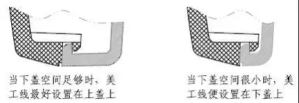 3)止口方向设计,应将侧壁强度大的一端的止口设计在里边,以抵抗外力