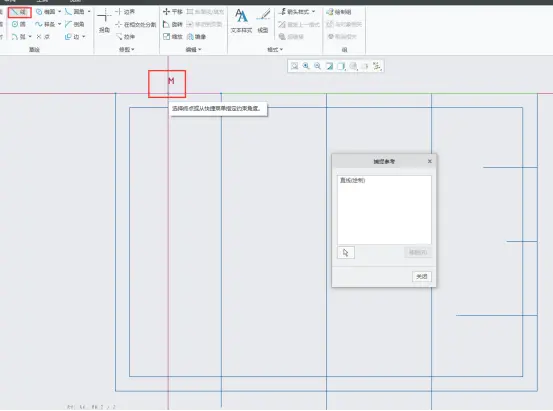 4、点击草绘模块——利用“偏移边”命令偏移图纸边界得到图纸边框。偏移距离e=10