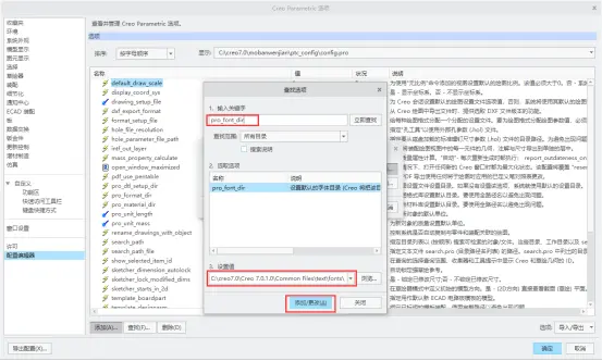 2、在config设置选项pro_font_dir值为“C:\creo7.0\Creo 7.0.1.0\Common Files\text\fonts