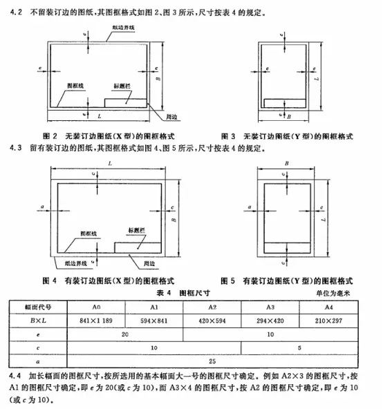 在我国制图的幅面及格式一般采用国标(GB/T 14689-2008)规定,也有公司使用自己定义的图框格式。下面是摘录的国标图纸幅面尺寸及格式要求。
