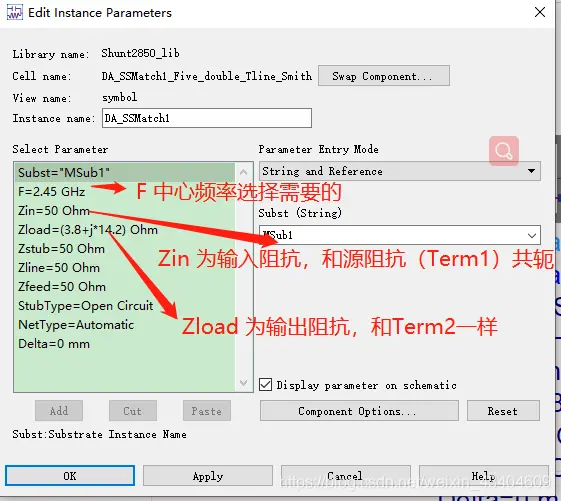 3、双击"DA_SSMatch1_Five_double_Tline_Smith"设置相关参数,