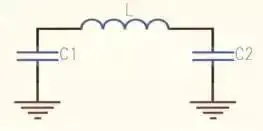 若经过严格的物理理论推导和近似分析,可以把过孔的等效电路模型为一个电感两端各串联一个接地电容,如下图所示。