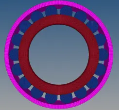 轴承内圈存在较大的圆角,需要对引导面进行划分,划分后使用2D中的automesh命令对引导面进行二维引导网格划分,如图8所示