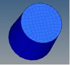 轴承滚子为圆锥形状,采用旋转的方式生成网格必定会在滚子中心部位产生三角形单元,因此我们将圆锥滚子的一个底面作为2维网格引导面,通过solidmap命令生成结构化网格,滚子模型如图10所示