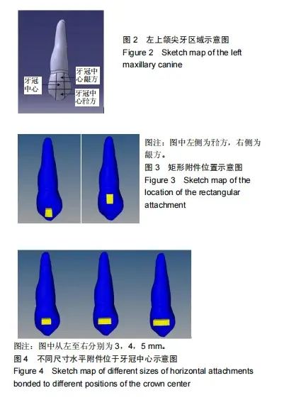 实验建立上颌尖牙、牙周组织的三维有限元模型,在模型上设计不同大小及位置的附件,进一步探索无托槽隐形矫治中矩形附件的作用机制,以指导临床更合理高效地应用隐形矫治器。