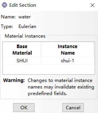 在Property模块中,单击Create Section创建截面,类型为Solid-Eulerial,在Edit Section对话框中选择材料类型,如图5所示。