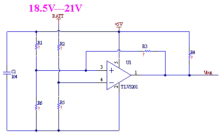 当BATT=18.5V时,U1=18.5*R6/R1+R6=0.88V