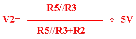 同样根据叠加定理写出公式(VCC=5V,V1=V2):