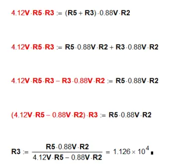 把V2=0.88V、R2=4300R、R5=1000R代入式中进行化简运算