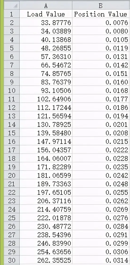 金属材料单向拉伸试验后,会得到力和位移的一一对应的数据表。正确且规范的实验往往有许多无效的数据点,这些点需要在处理的时候首先剔除出去。