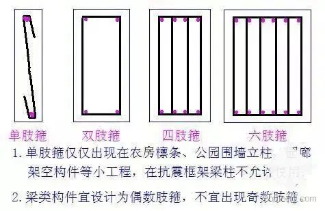 箍筋: 用来满足斜截面抗剪强度,并联结受拉主钢筋和受压区混凝土使其共同工作,此外,用来固定主钢筋的位置而使梁内各种钢筋构成钢筋骨架的钢筋。是梁和柱抵抗剪力配置的环形(当然有圆形的和矩形的)钢筋,是口字形的,将上部和下部的钢筋固定起来,同时抵抗剪力。