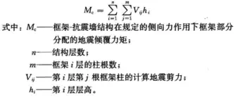 抗规6.1.3条给出了框剪结构框架部分承担的倾覆力矩占总倾覆力矩的比例要求,条文说明给出了计算方法如下,地震总倾覆力矩用规定水平力对应的弯矩值: