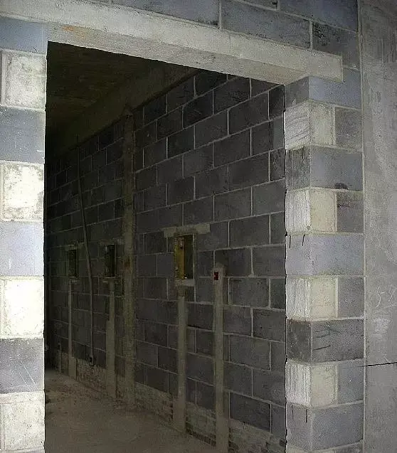 3、 塞口砖两头斜角用实心砖切割,或者用混凝土提前预制定型产品。
