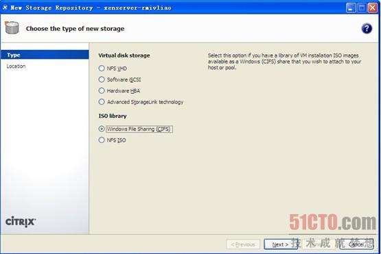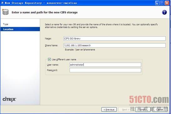 成功后XenServer5.6会添加一个CIFS ISO library的storage,我们可以把这个当成本地目录来使用了。VM的安装媒质可以选用家用Server自带的光驱,也可以用我们新建的storage。#p#