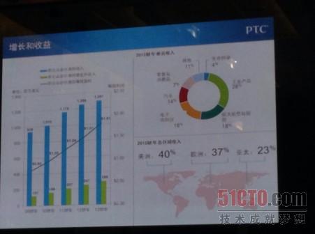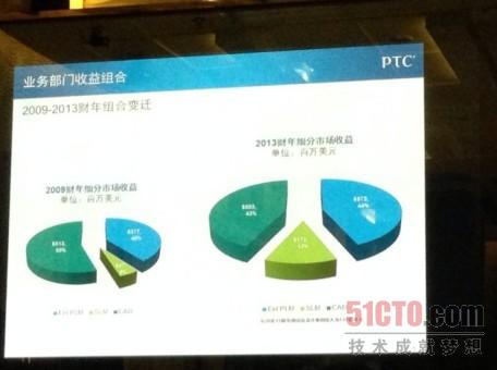 沟通会上, Robert Kocis展示了PTC近几年CAD、PLM和SLM的收益分布。