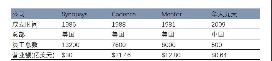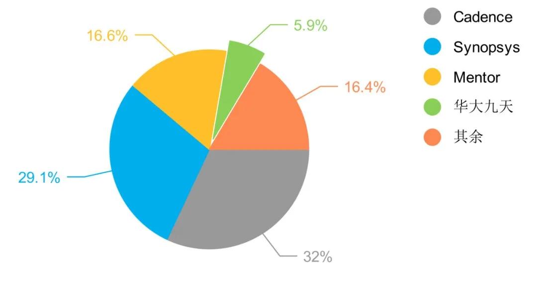 单拿EDA软件领域来说,国产EDA软件在中国市场份额大概在10%左右,剩下的90%全部都被美国的Synopsys、Cadence和Mentor Graphics三巨头所垄断。而目前国产EDA软件市场份额最大的是华大九天,挤进了TOP4。