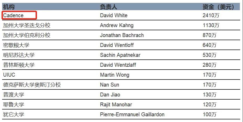 ERI受资助名单,三巨头中的Candence一家就获得2400万美元