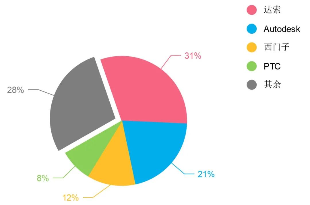 根据IDC在2016年公布的数据,这四家公司占据了全球CAD市场的72%的份额,传统CAD巨头在全球领域拥有绝对的话语权。