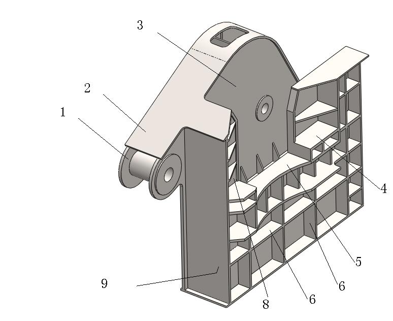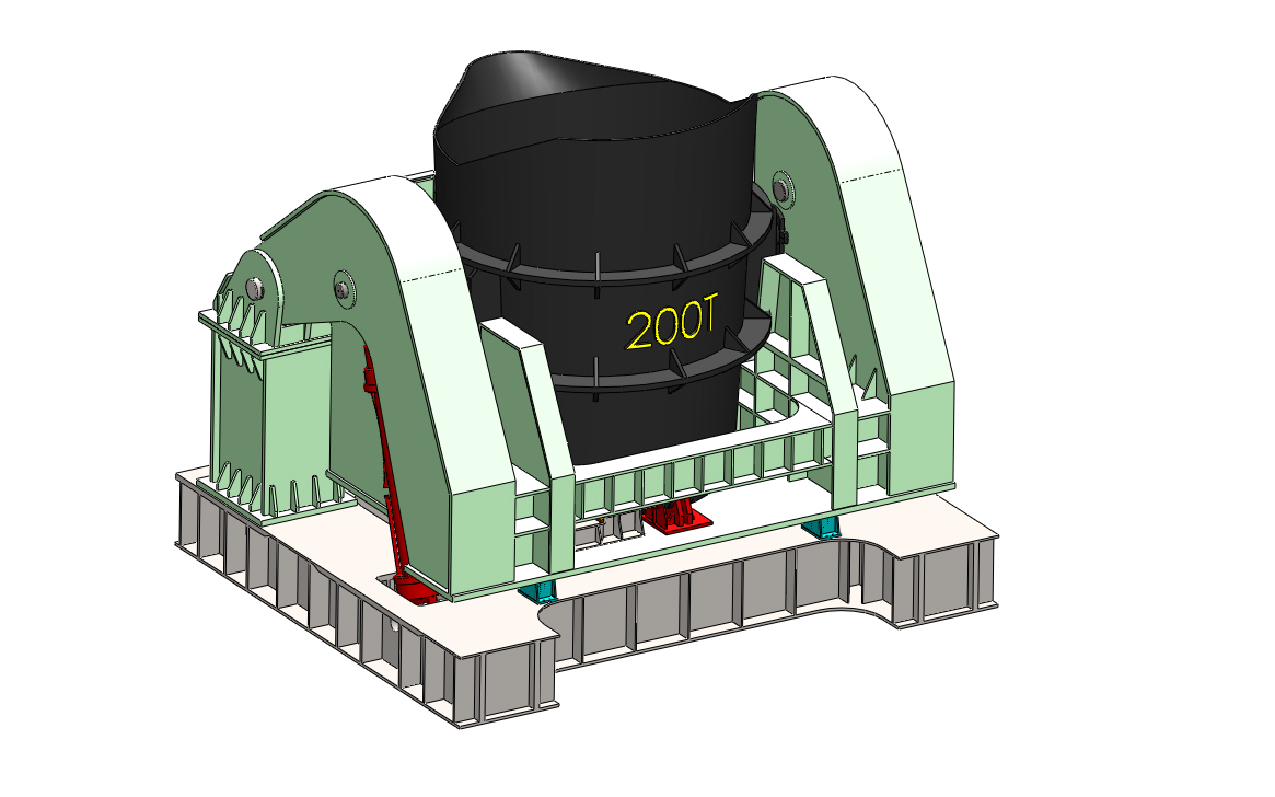如图所示,钢包架需要承受中间的钢包(有效重量为271吨)。钢包架如图2所示,原始结够重92吨,需要满足正常工作的前提下,减重15吨左右。