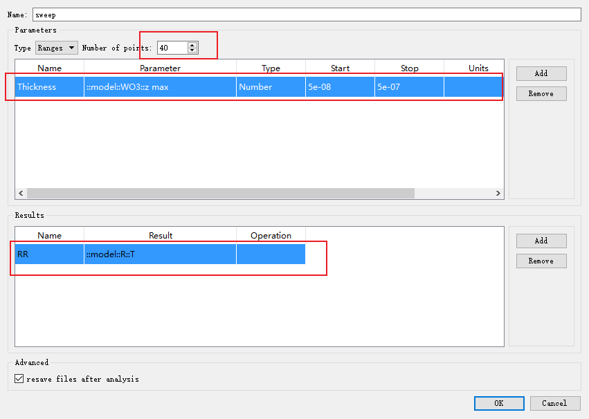 右键编辑,从下拉菜单中选择自己想要扫描的参数,并添加扫描范围和扫描频率,在下方添加结果监视器,这里监视器选择前面设置的反射率监视器。