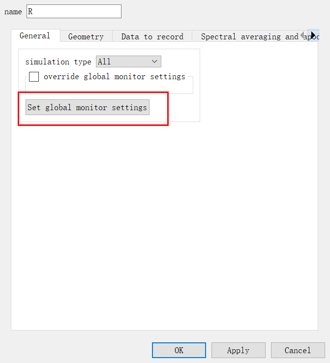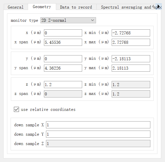 监视器选择Z-normal,XY平面尺寸大于FDTD尺寸,大了无所谓,超出的部分不会记录数据,主要是设置Z方向的位置。反射率监视器在光源和FDTD上边界中间。