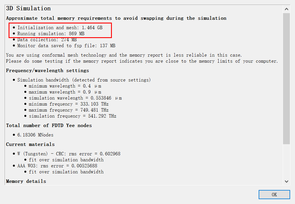 simulation不超过电脑内存大小,否则无法计算,需要降低精度才能计算。