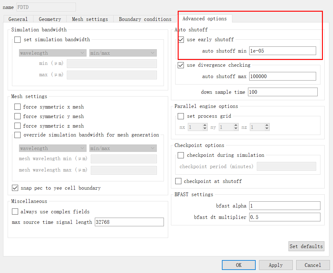 一般会提前结束,提前结束的条件是Autoshutoff的数值满足FDTD中设置的停止条件。