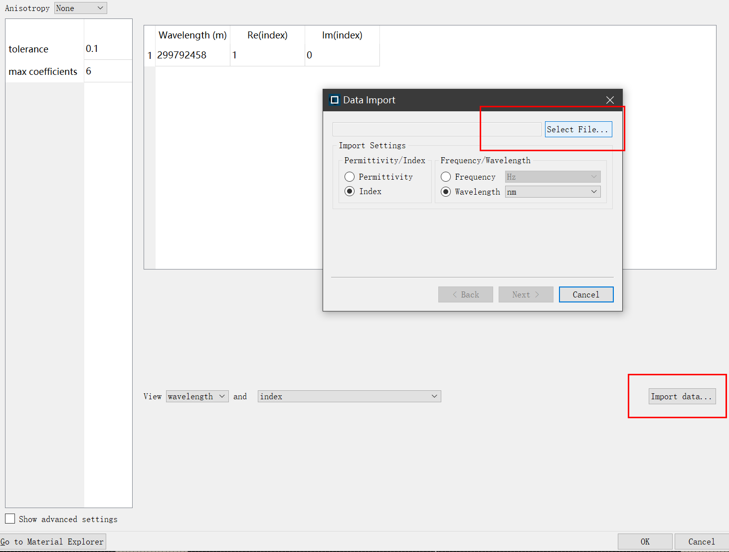 由于WO3材料在FDTD的材料库中没有内置,需要自己查找并导入,对于一般材料可以从如下网站中查找相应折射率: