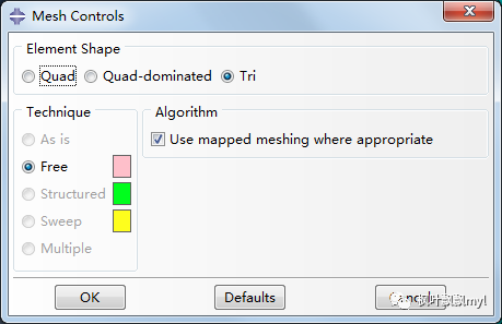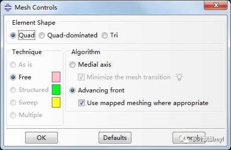 (1) 网格划分方法以及单元 类 型设置;