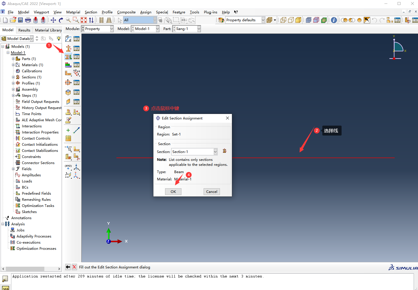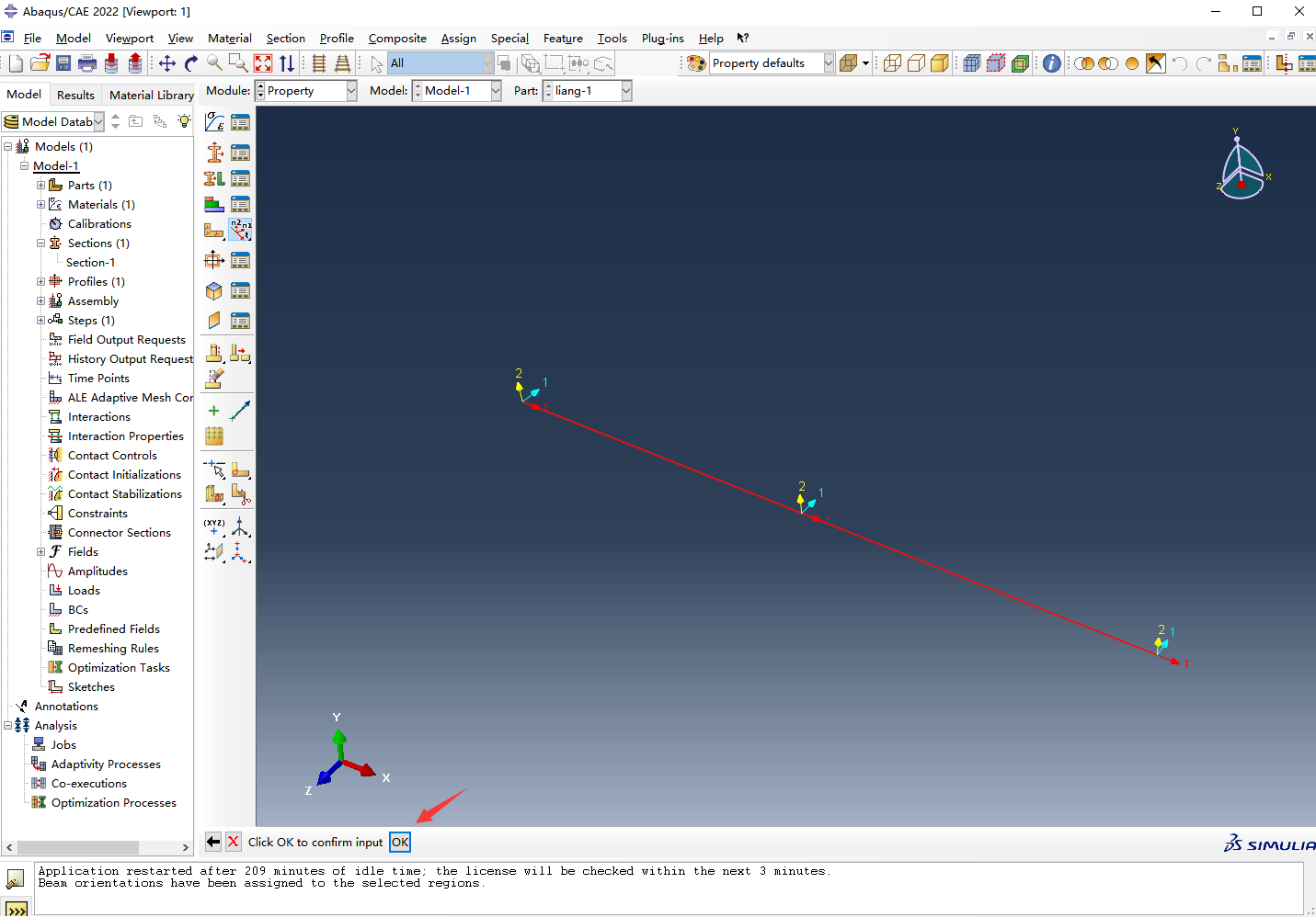 9.为线赋予节面,点击Create Section,选中线(线变红),点击鼠标中键,点击OK。(因为就一条线,直接点击OK即可。)