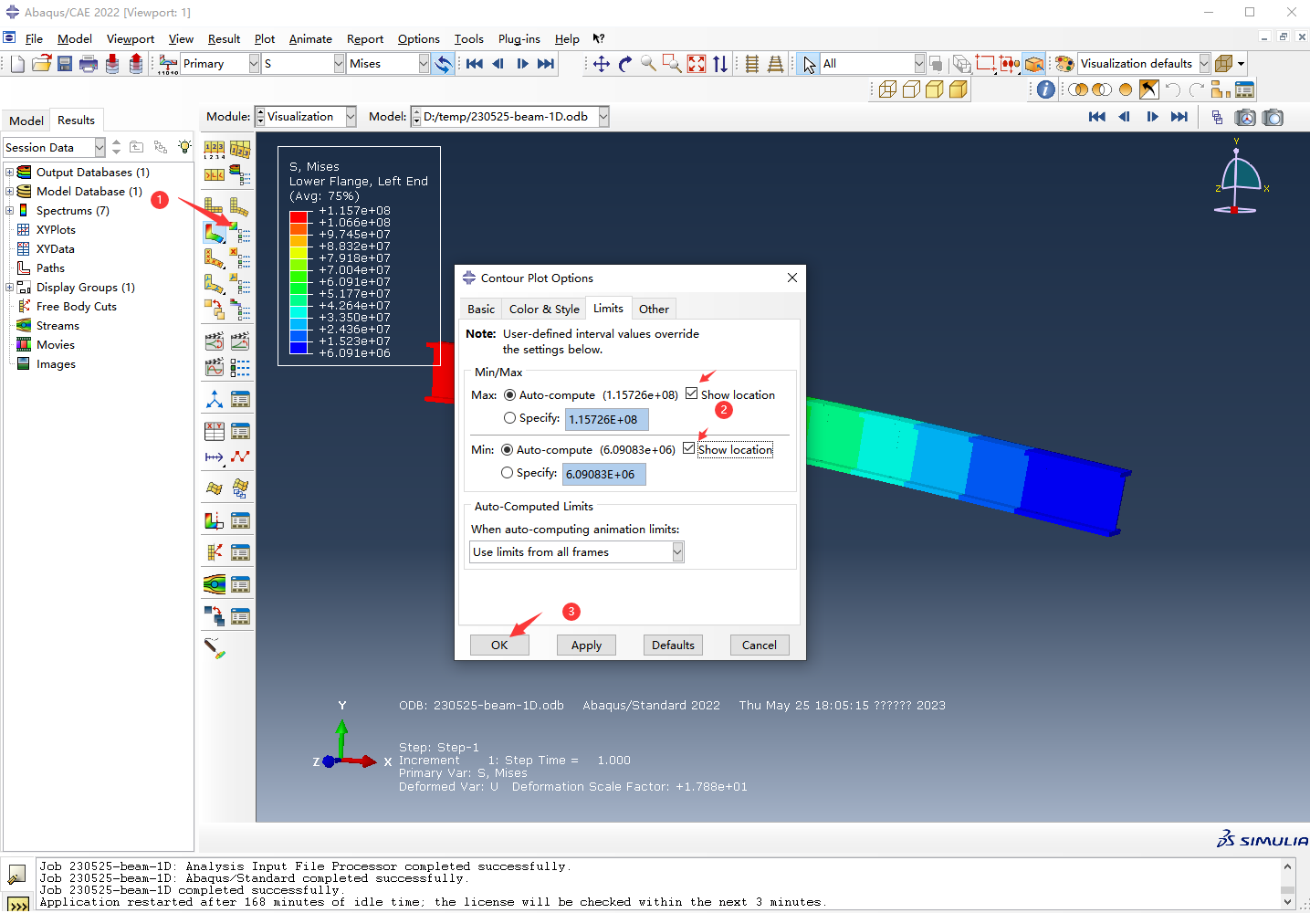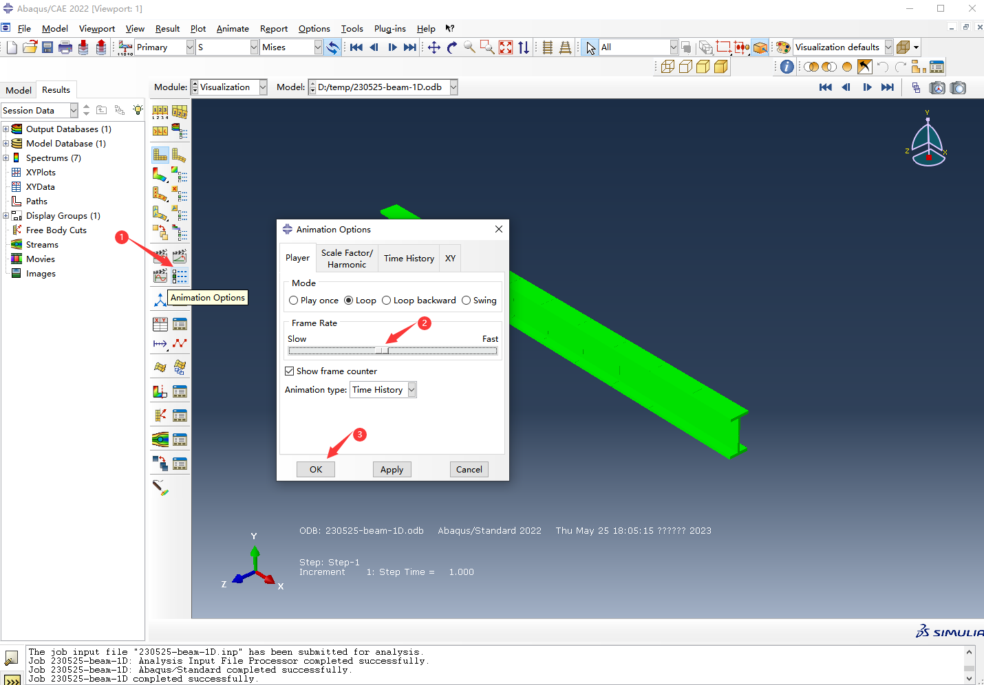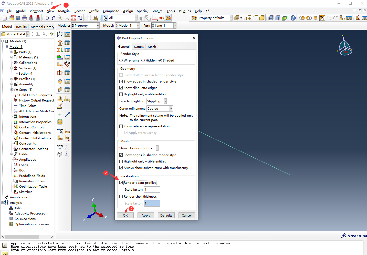 12.可视化梁:点击View—>Part Display Options。勾选Render beam profiles,点击OK。