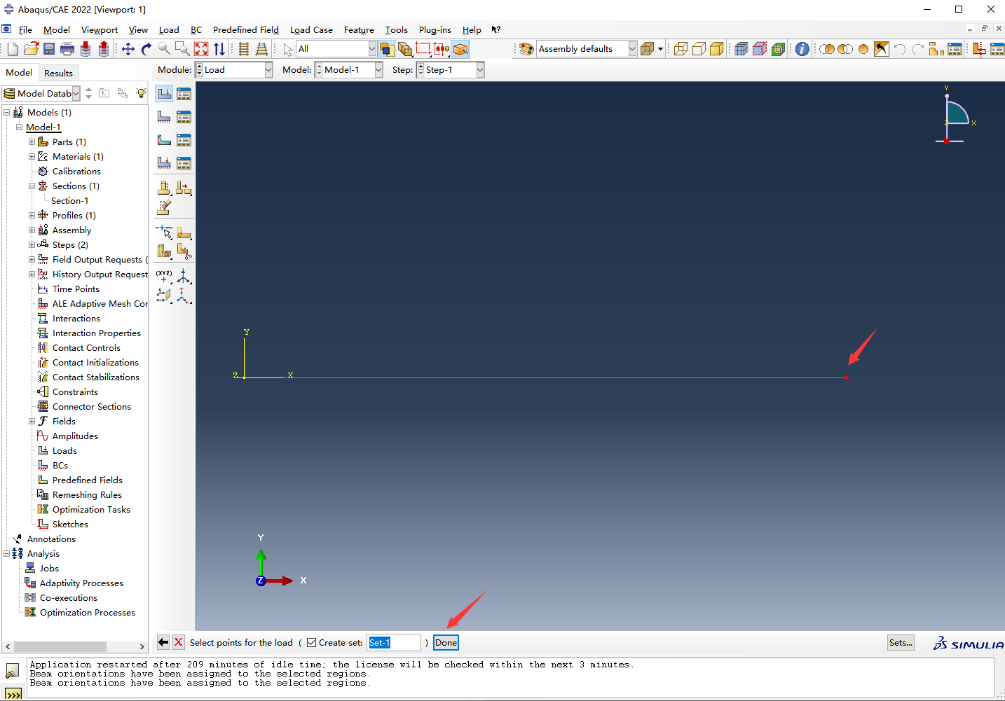 16.载荷:首先定义集中力,在Module选择Load,点击Create Load,选择集中力Concentrated force,点击Continue…。