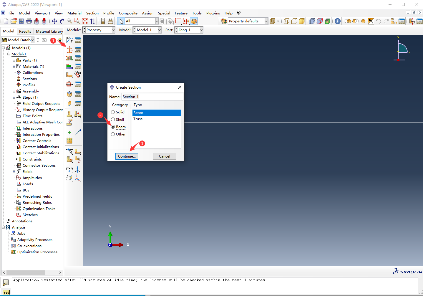 5.点击创建节面Create Section,选择梁Beam,点击继续Continue…。
