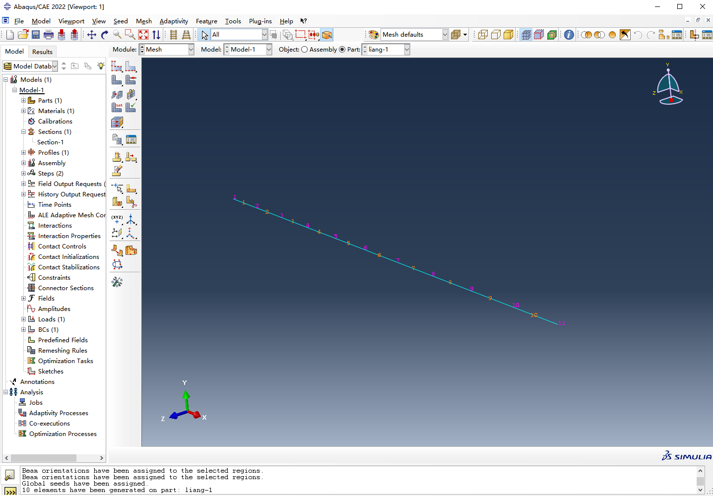 这是通过隐藏梁的渲染,显示Mesh的节点与单元后的结果。(具体通过View中的Part Display Options进行设置)