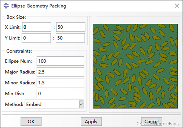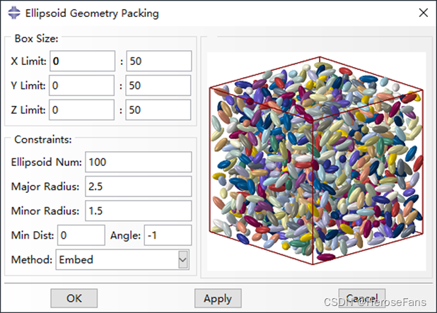 用于在长方体边界内随机填充椭球骨料,可控制椭球骨料间的最小间距。