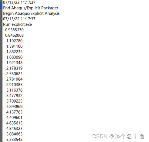 通过在子程序代码中直接加入语句write(*,*)+要输出的值,就可以在log文件中显示,效果图如下: