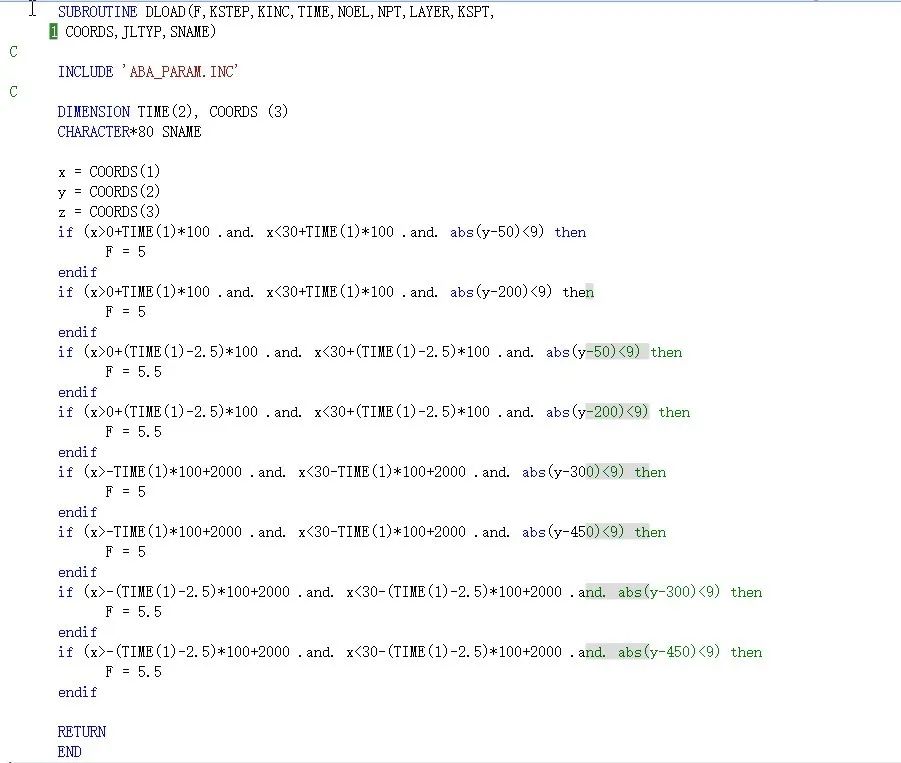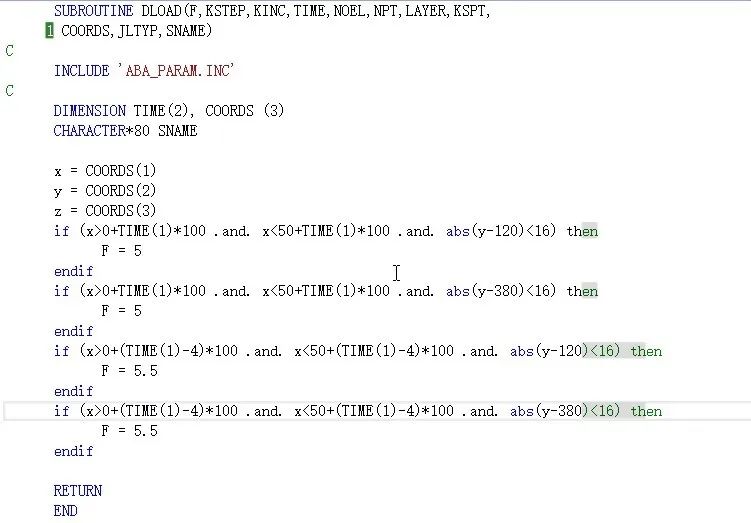 此时结构所受载荷是比较复杂的函数时(如与时间、位置等相关),通过界面输入的方式已经难以实现,通常便需要借助于DLOAD子程序来进行加载。下面将就ABAQUS软件的DLOAD子程序进行讲解和应用举例。