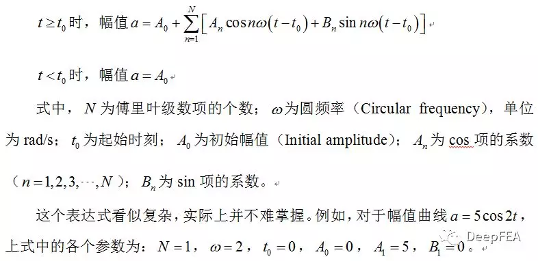 如果某个量是周期性变化的,就可以使用周期型幅值曲线。周期型幅值曲线用傅里叶(Fourier)级数表示,其 表达式 为: