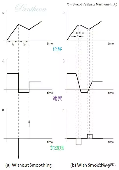 以可能最光滑的方式施加载荷要求加速度从一个增量步到下一个增量步只能改变一个小量。如果加速度是光滑的,随其变化的速度和位移也是光滑的。