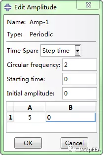 创建等间距型幅值曲线,以固定时间间隔给出幅值大小,Abaqus将在每个时间间隔内进行线性插值。定义时应给出时间间隔和初始时刻(或最小频率值),默认的初始时刻为0。