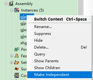 这一步还没有结束,在左侧 Assembly 中的 Instances 中右键每个模型,选择 “make independent”,这一步就结束了。