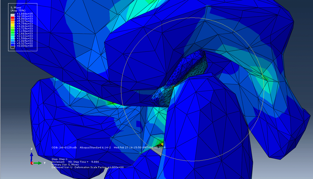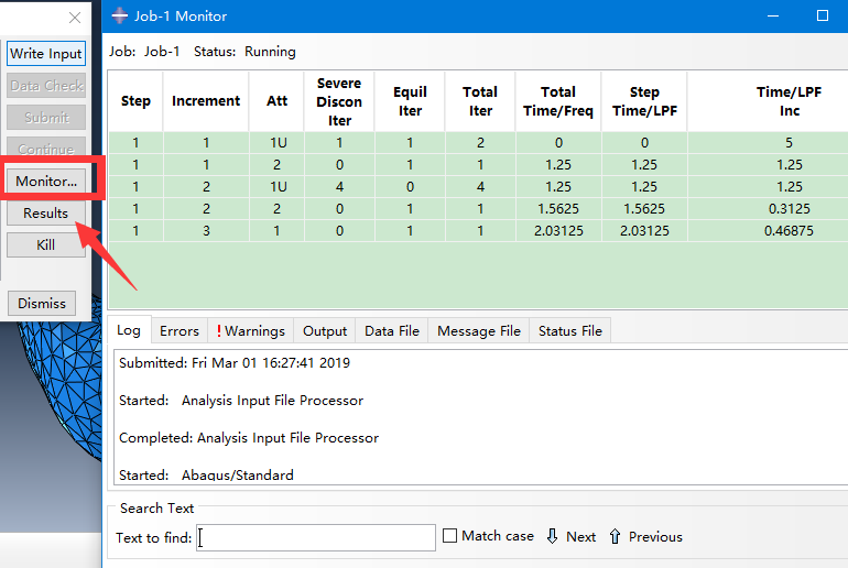 (2)总装求解:将单元总装成整个离散城的总矩阵方程(联合方程组)。总装是在相邻单元结点进行。状志变量及其导数(如果可能)连续性建立在结点处。联立方程组的求解可用直接法、选代法。求解结果是单元结点处状态变量的近似值。在 Abaqus 中就是 submit 提交一下自动就会计算了。