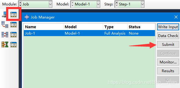 本文记录了使用 Abaqus 进行有限元分析的常规流程,基本上就是按照 Module 中的分块,从上到下进行即可,如下图所示。