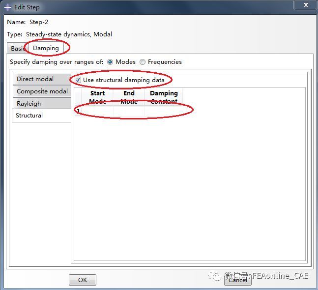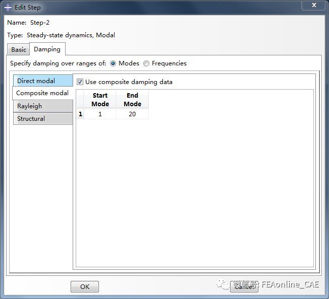 b) 在分析步骤内勾选复合阻尼选项,如下图所示: